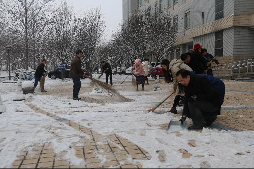—研究生院(研工部)支部组织党员干部积极开展义务扫雪除冰活动